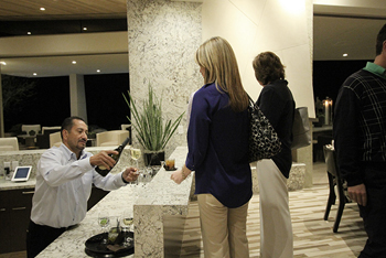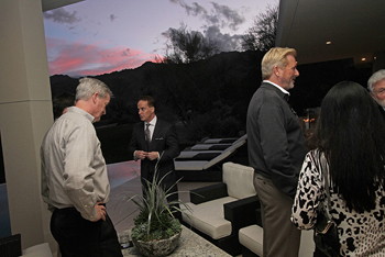 In cooperation with our builder/client, SFG hosted a holiday reception and open house at this magnificent new spec home at Bighorn in Palm Desert (click here to see the Success Story). Recently completed and listed at $7.85m, this contemporary home features a highly-coveted Guy Dreier design. It is visually stunning, as to its architecture, its golf course location, along with desert and mountain vistas.
